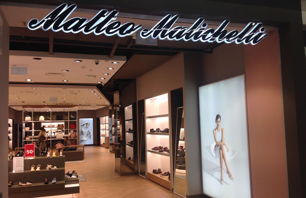 Нашей компанией выполнена фасадная вывеска для магазина "Malichelli", ввиде световых букв контражурного свечения, с эффектом "парения в воздухе", а также широкоформатные ультра-тонкие лайтбоксы (фреймлайты), размером более 2-х метров с технологией полной фронтальной засветки, обеспечивающей яркость по всей площади фреймлайта.